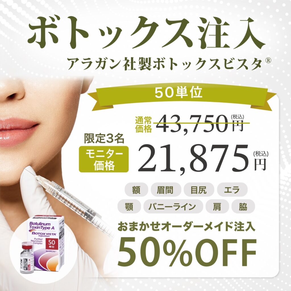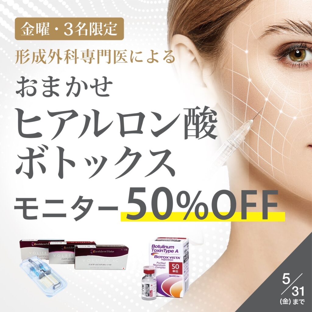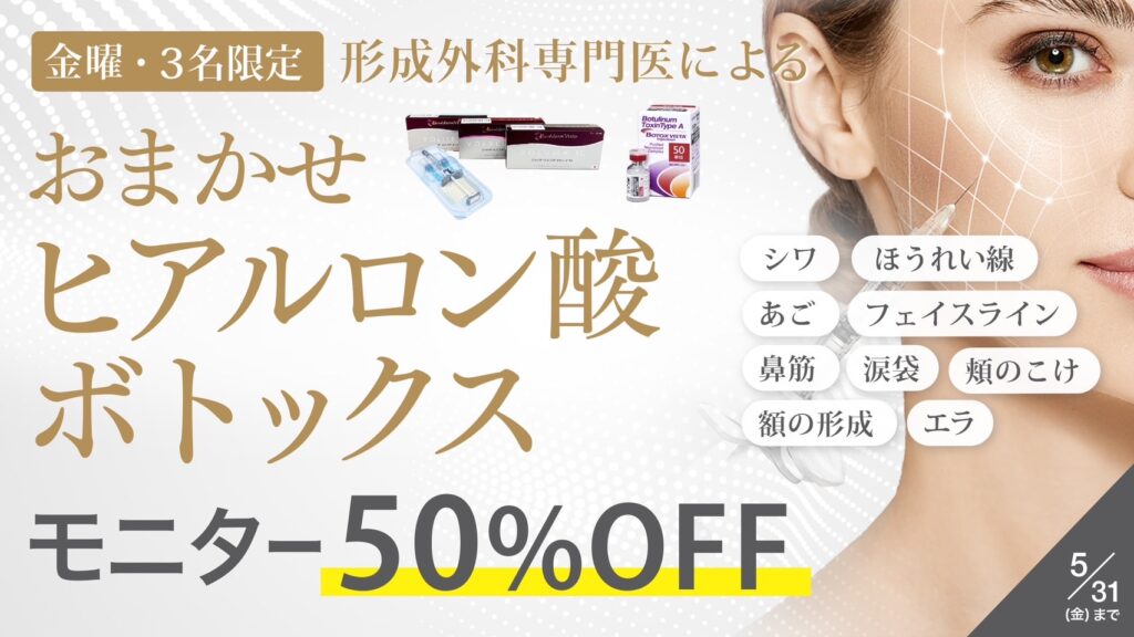 金曜日・3名限定で「ヒアルロン酸」「ボトックス」のモニターキャンペーンを実施中!