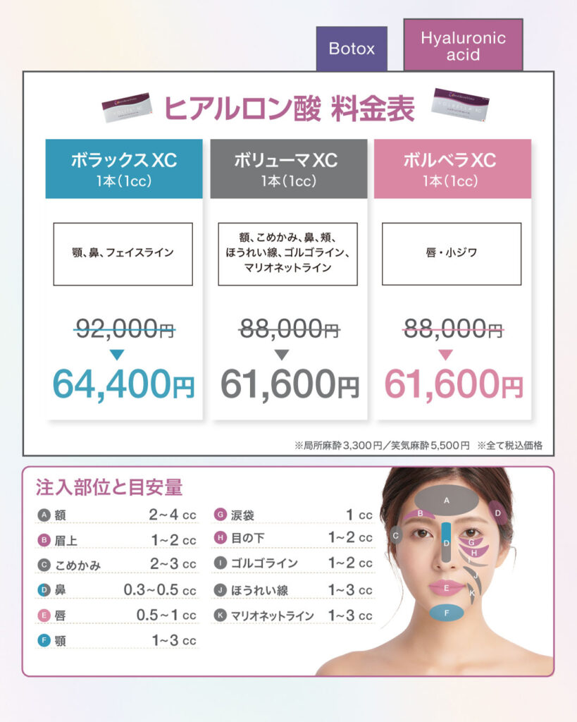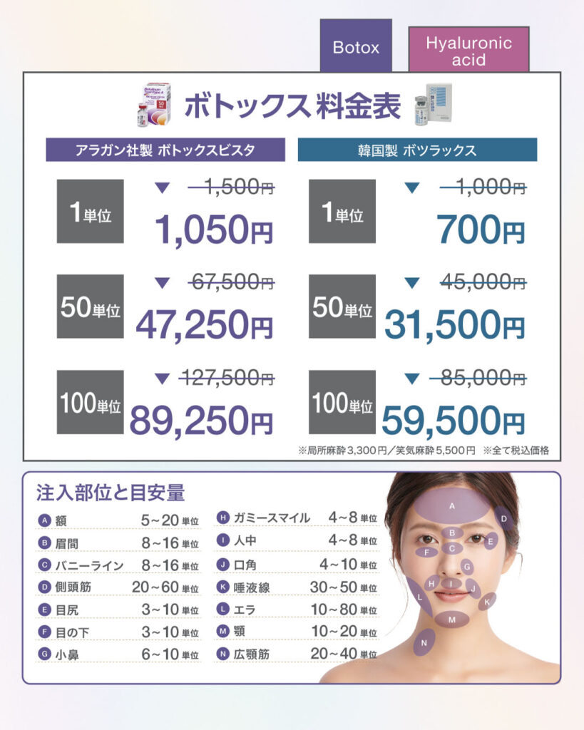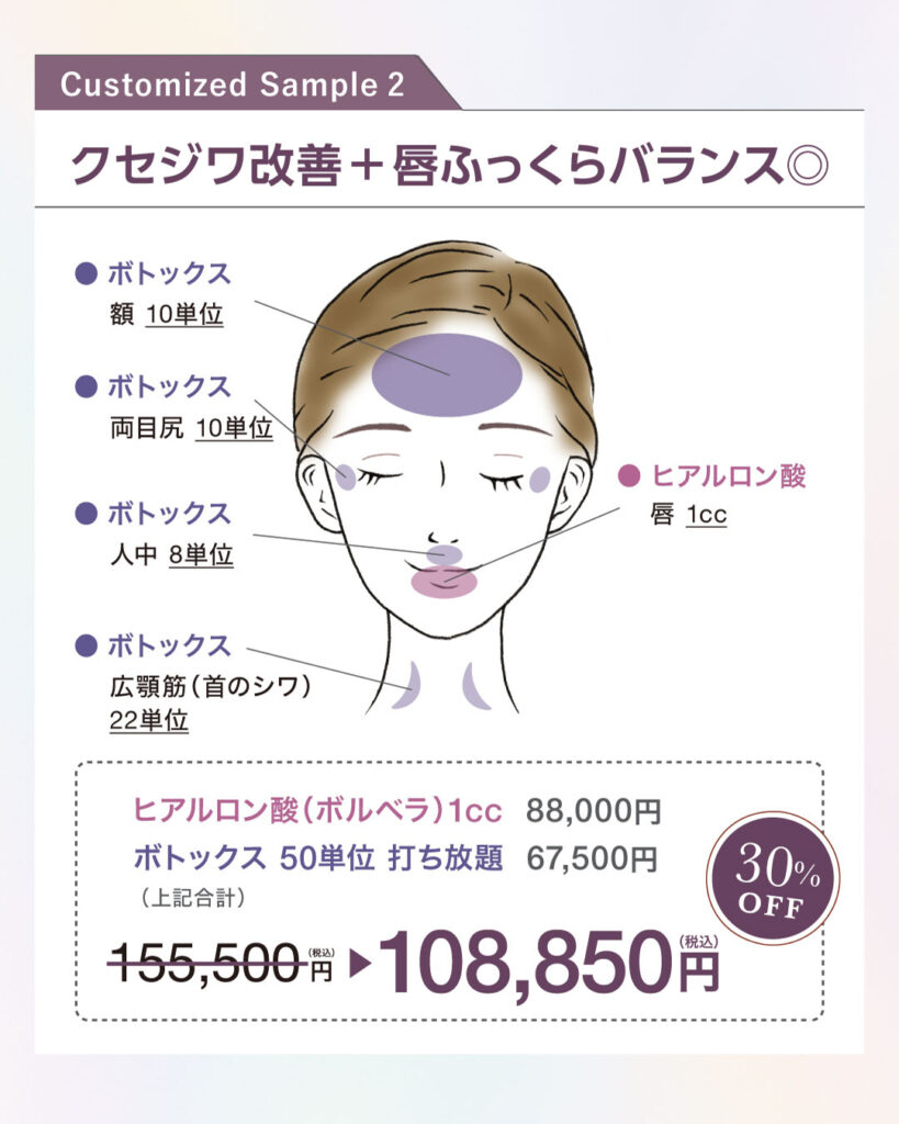 ボトックスとヒアルロン酸のセット施術で30%OFF!