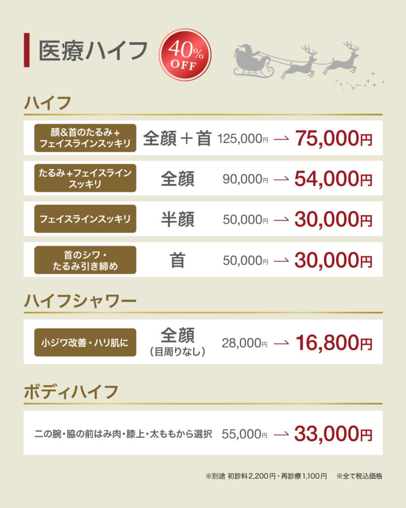 ●お電話予約の場合は、「ハイフキャンペーンを見た」と必ずお伝えください。