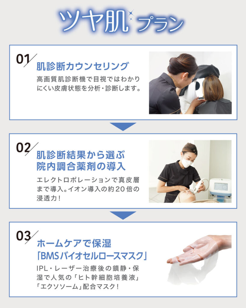 - お電話予約の場合は、「ツヤ肌プランを見た」と必ずお伝えください。