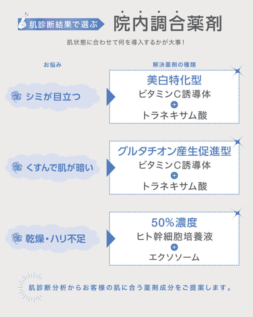 当院では、肌状態別に「院内調合薬剤」をご用意しております。
