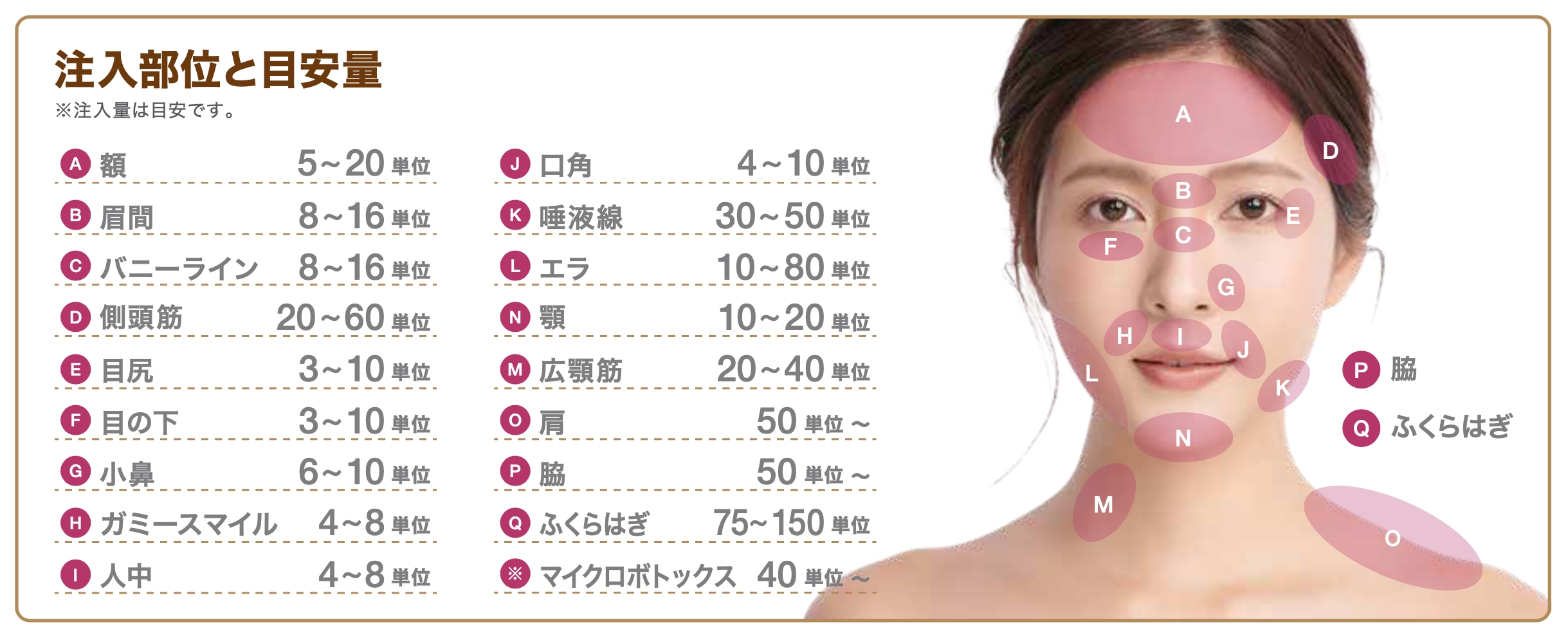 ボトックス料金一覧